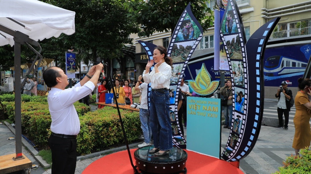 Không gian trải nghiệm photobooth 360 độ tại Triển lãm “Thành phố Hồ Chí Minh vươn mình cùng đất nước qua góc nhìn điện ảnh”
