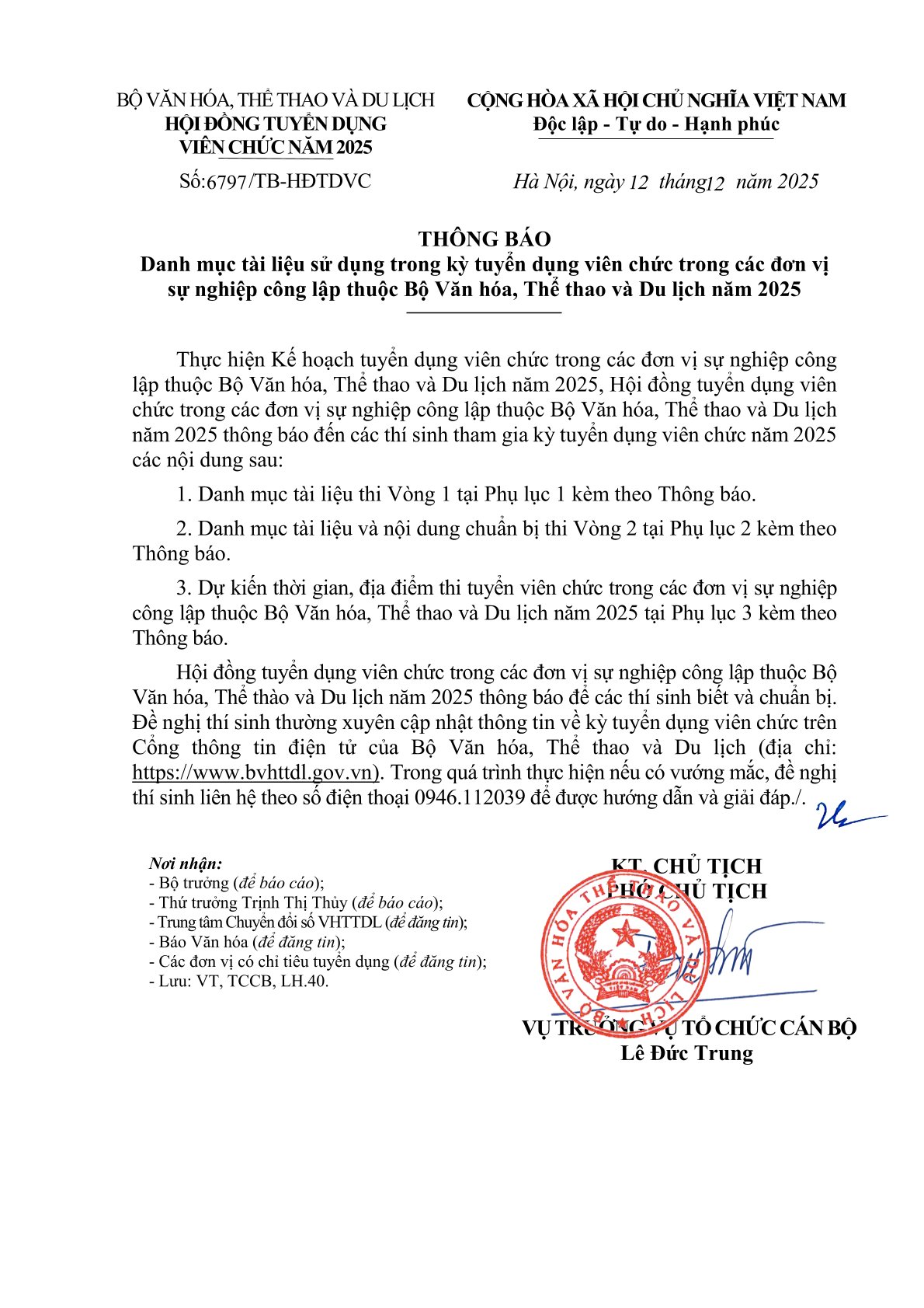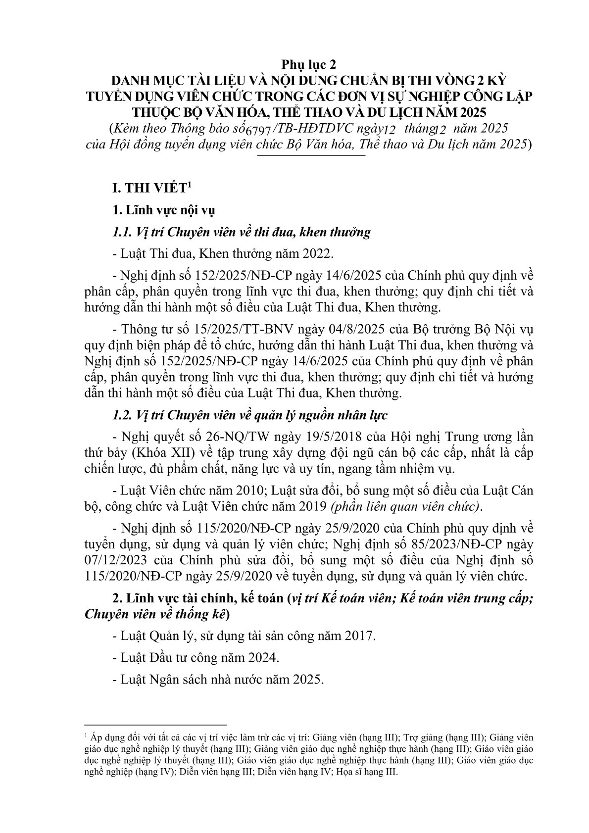 Thông báo Danh mục tài liệu sử dụng trong kỳ tuyển dụng viên chức trong các đơn vị sự nghiệp công lập thuộc Bộ Văn hóa, Thể thao và Du lịch năm 2025 Admin 12/12/2025 | 21:21 202