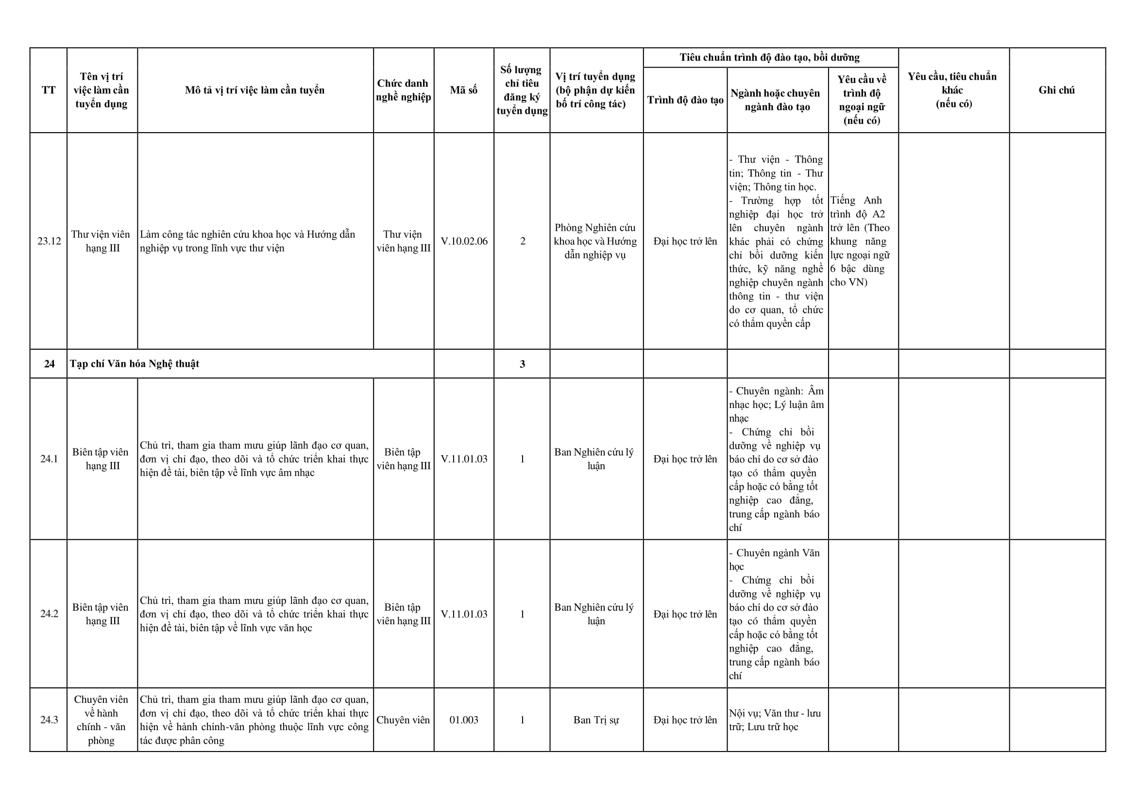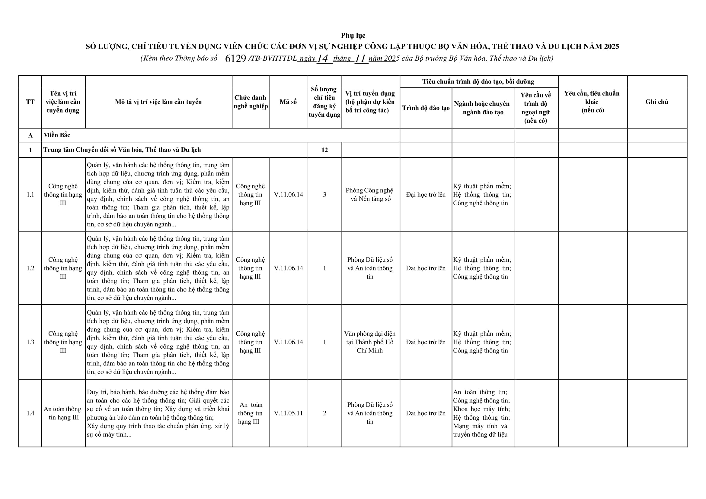 Thông báo Tuyển dụng viên chức trong các đơn vị sự nghiệp công lập thuộc Bộ Văn hóa, Thể thao và Du lịch năm 2025 Admin 17/11/2025 | 09:27 10