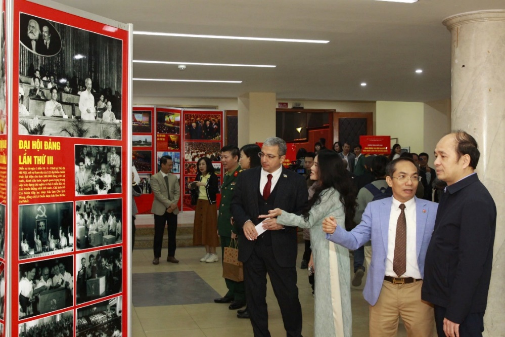 Khán giả tham quan không gian trưng bày tư liệu, hình ảnh về các kỳ Đại hội đại biểu toàn quốc của Đảng